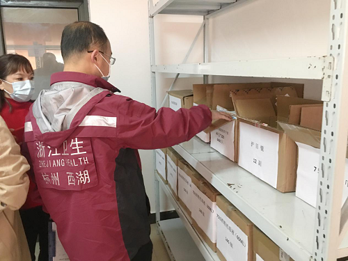 4月22日,杭州市卫健委欧阳泉处长专家检查组到我校检查指导2020春季学期开学学校卫生防疫工作,校党委书记、常务副院长王其军教授及相关职能部门负责人陪同检查。