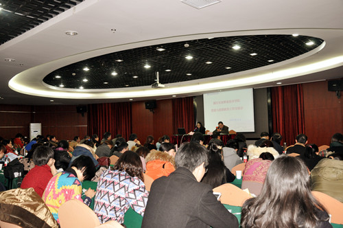2015年12月11日下午,学院召开党建与思想政治工作交流会,会议由学院工会主席、党委委员洪骏主持,全院各党总支书记(副书记)及教职工党员100余人参加了会议。