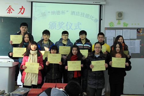 本次比赛筹备两月有余,经过竞赛方案策划、竞赛通知发放、学生报名、竞赛申请、赛前准备等环节。共计选手59名;评委8人,分别是纳德酒店股份有限公司综合部经理周觅虹女士、管理系副主任范平老师、旅游管理专业教研室主任朱月双老师、酒店管理专业教研室主任葛玲妹老师以及旅游管理与酒店管理全体专业教师。通过大家的共同努力,保证比赛结果公开、公正、公平。