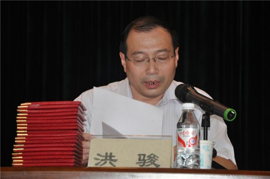 党委副书记洪骏宣读《关于表彰2009年度优秀共产党员、优秀党务工作者的决定》
