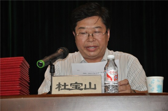 副院长杜宝山宣读《关于授予黎国英等同志为2009—2010学年先进工作者的决定》