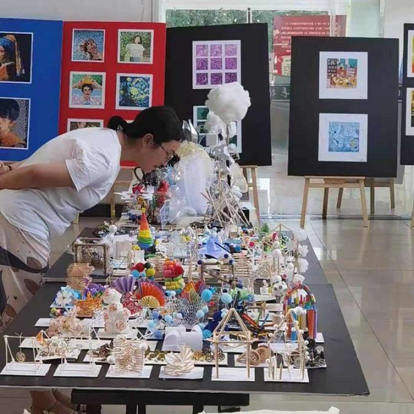 近日,计信系20级数字媒体应用技术专业课程作品汇报展行政楼玻璃房开展,将同学们在《立体构成》《色彩构成》这两门课程中的优秀作品进行展示。