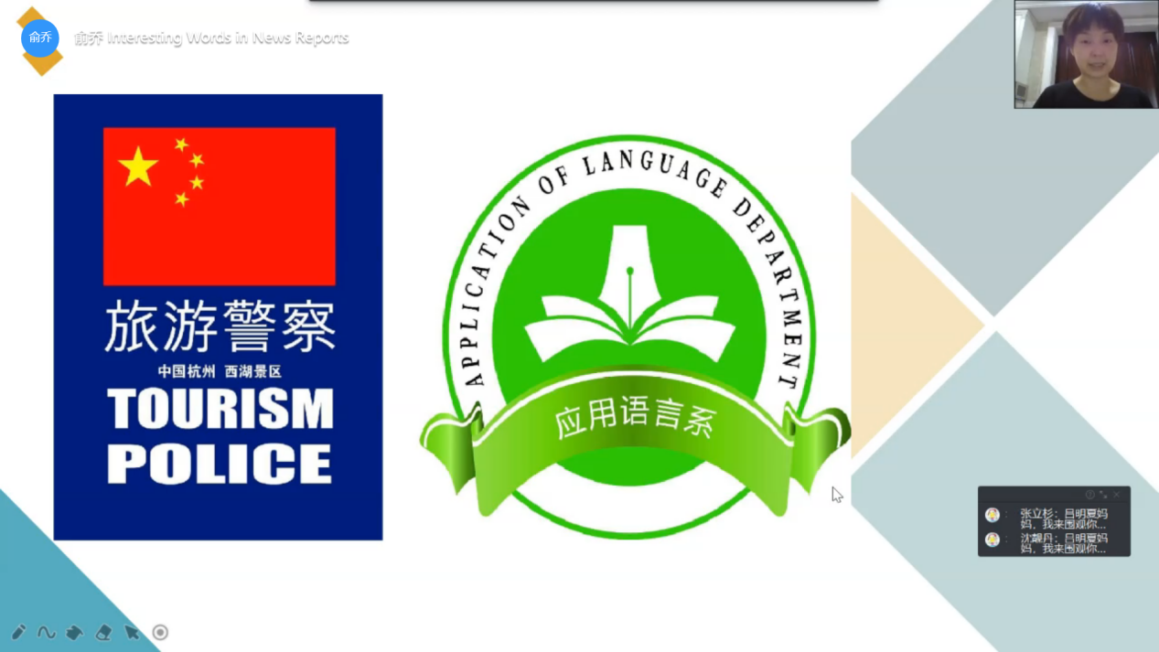 已经开展过的7月的教学主题为“疫情催生的英语新词 & 新人设热词”,由叶磊老师负责。课上叶老师带领大家学习了篇章节选《The Rules of Coronaspeak》(“新冠新语”的造词门道),并了解疫情催生的四类新人设。8月的教学主题为“Interesting Words in News Reports”,由俞乔老师主持,联系七、八月份的相关热点新闻,带领大家读新闻、学生词并展开思考和讨论。累计参与7月、8月两次教学实践的警官人数达136人,教学反馈良好。警官们纷纷表示两次学习经历受益匪浅,在热点实事的分享学习中积累了新词、开拓了视野,且提高了英语表达能力。老师们也表示这样的教学实践机会很有意义,有效地提升了自己的社会服务能力。