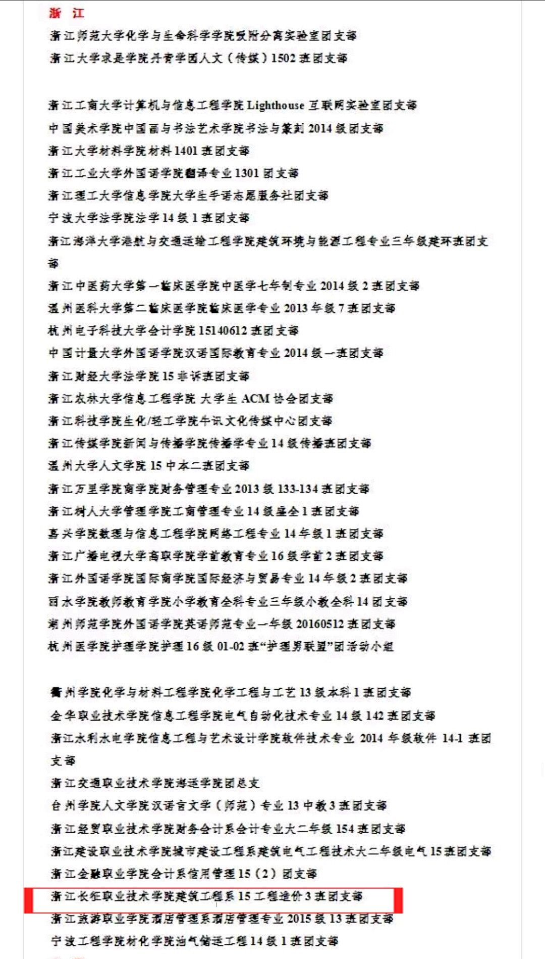 为贯彻落实《共青团中央改革方案》有关精神,深入实施高校基层团支部“活力提升”工程,团中央学校部于2016年秋季面向全国各高校的学生团支部(总支),开展了“活力团支部”创建遴选活动。我院积极响应团中央和团省委的号召,组织开展了浙江长征职业技术学院第四届“活力团支部”团支部风采大赛,经过初赛评选出14支优秀团支部进入决赛,经过复赛激烈角逐,最终评选出建筑工程系15工程造价3班团支部为浙江长征职业技术学院“五四红旗”团支部,并推选该支部参加团中央遴选活动。经过团中央资格审核、网络投票和评审,最终确定全国1000个团支部为“活力团支部”,其中我校建工系15工程造价3班团支部以出色的班风、学风、团组织作风,被评为2016年全国高校“活力团支部”称号。