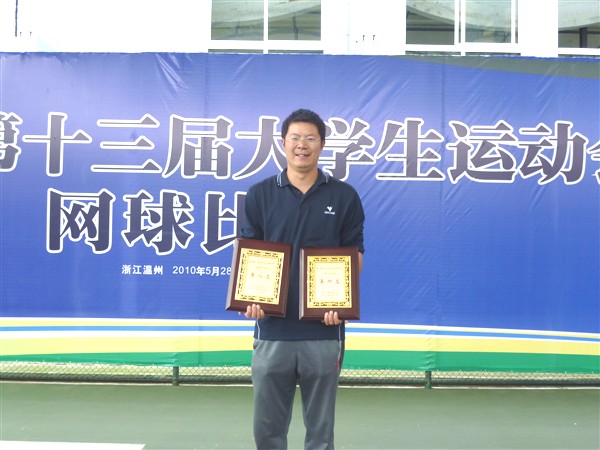 2010年5月28日至6月2日,由浙江省教育厅、浙江省体育局主办的“浙江省第十三届大学生运动会网球比赛”落下帷幕。我院在本次比赛中,由教练员张自强老师率领的学院网球队(队员:杨希、章慧婷、张旭、林浩、杨栋、苏秦刚)不畏强手,奋勇拼搏,经过为期6天的鏖战,获得了骄人的成绩: