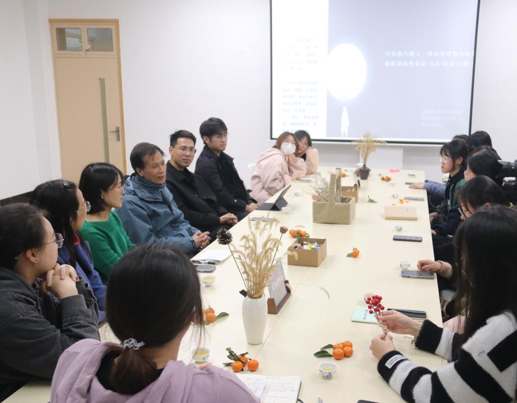 戴珂莹首先向大家介绍了《月亮与六便士》这部作品的作者、主要内容、人物简介及创作背景,在场师生围绕这部作品各抒己见、积极发言,从不同视角分享了自己的读书感悟。随后,大家围绕“月亮和六便士,代表着理想与现实,你有怎样的思考和取向?”这一话题,以击鼓传花的形式结合图书主题与现实生活、自我的思考与选择等展开了热烈讨论。