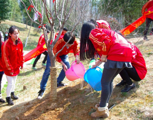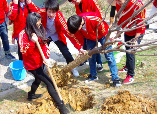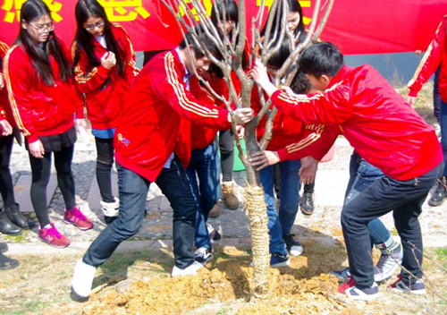 3月12日,由我院环保协会发起的以“生命在于绿色,希望在于绿色“为主题的植树节活动在“情人湖畔”举行。学院30名毕业生和20名学生志愿者参与了此次活动。大家热情高昂,干劲十足,志愿者们将毕业生捐赠的樱花树细心种植,为毕业生在母校创建的纪念园林又增添了一份新绿。最后,志愿者们在樱花树上寄上了红丝带,为毕业生送上了最真挚的祝福,并合影留念。(院团委供稿)